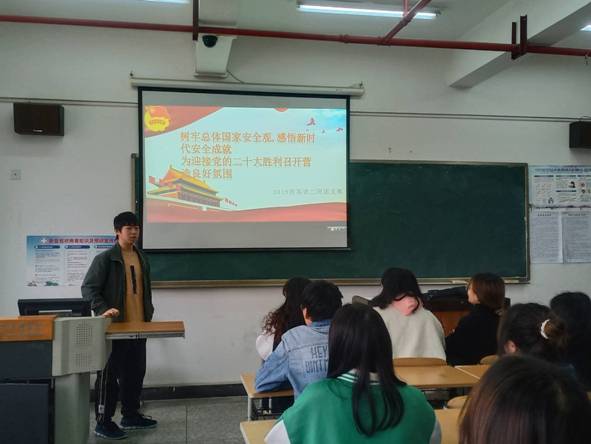 首先,各班团支书组织班上同学一起学习有关党的二十大召开的相关信息和国家安全知识。增强国家安全意识,共同担任起这份神圣的责任。我们应不断增强国家安全意识和法治意识,构建大安全格局,要深刻学习领会新时代党的创新理论,坚持理论创新以优异成绩迎接党的二十大胜利召开。本次活动形式多样,紧密结合建团100周年,包括组织团员观看相关影视作品,进行团史知识竞答比赛,举行征文比赛等形式,同学们都积极地参与活动中来,这也让大家意识到新时代的中国青年要以实现中华民族伟大复兴为己任,不负时代,不负韶华,不负党和人民的殷切期望。团员们更是要坚定斗争意志。思想是行动的先导,要练就斗争真本领首先得拧紧思想"发条”,无论面对何种境况都能拿出“敢教日月换新天”的如火斗志,始终做到“风雨不动安如山”的镇定自若;要认真学习马克思主义基本原理特别是新时代党的创新理论成果,牢固树立正确的价值观念和斗争意识; 要拓宽视野、敞开胸襟,从当今国内外发展形势中读懂大势大局,深刻理解“实现伟大梦想,必须进行伟大斗争”的时代内涵。