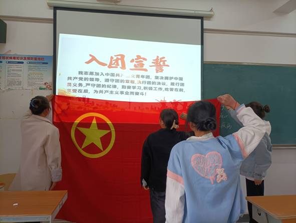 其次,21级新发展团员在班级团支书的带领下举行了入团仪式。