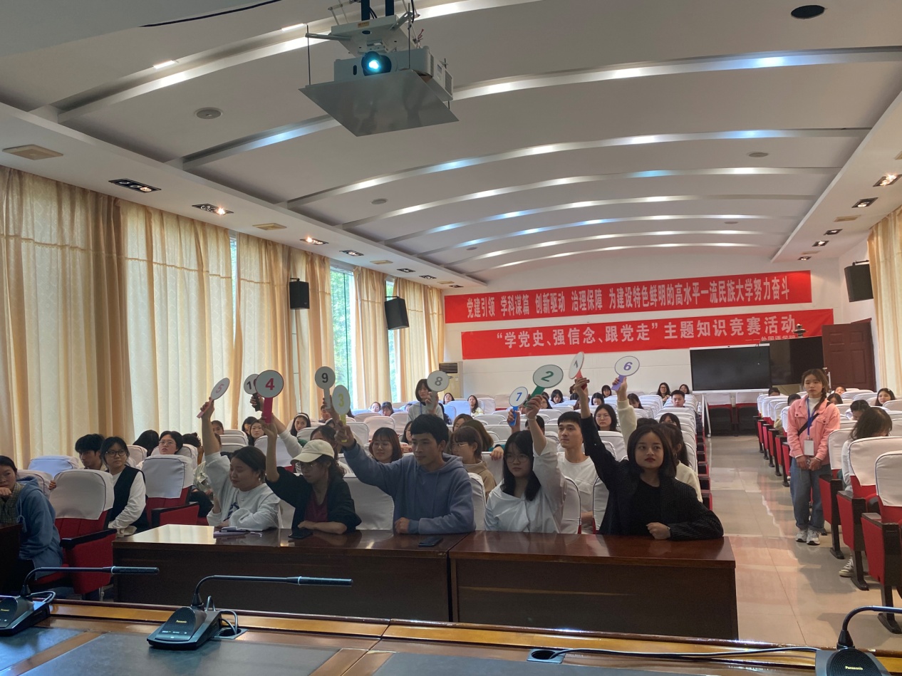 在老校区行政楼第五会议室举办了“学党史、强信念、跟党走”主题知识竞赛活动。本次比赛参赛代表队每队3人,由同学们不分年级、不分专业自由组合,共41支队伍、123人参赛。
