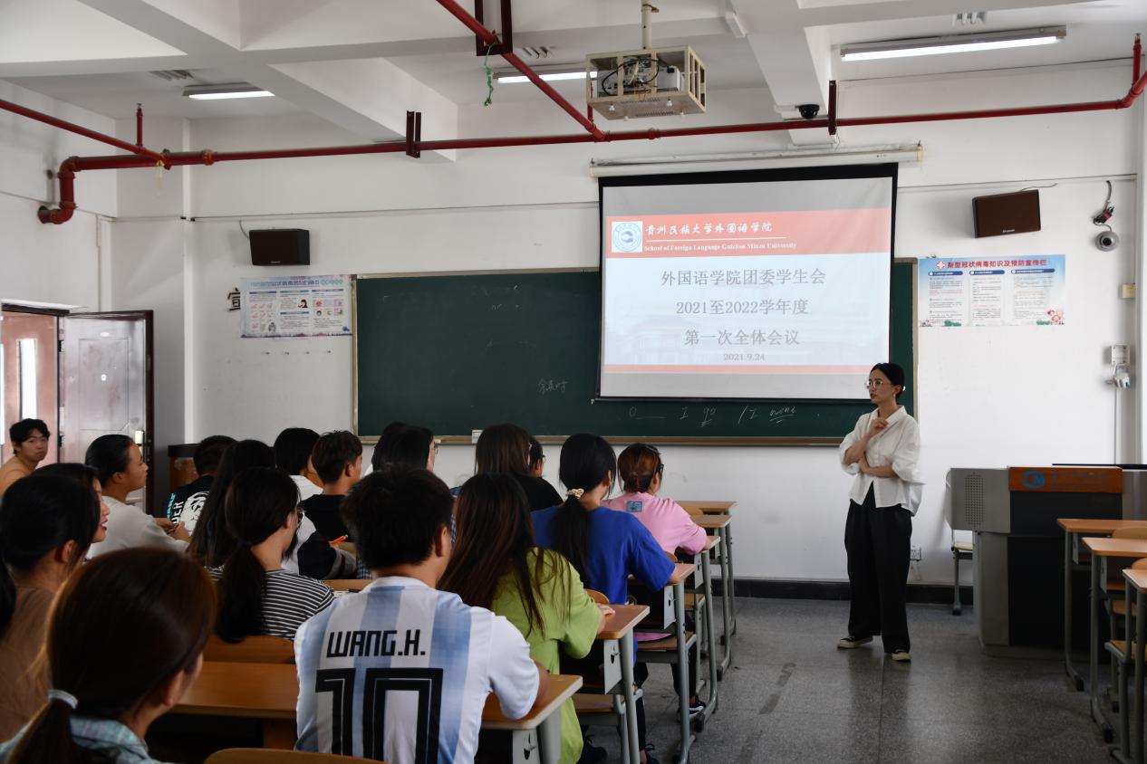 在花溪校区15号教学楼举行2021-2022学年度第一次全体会议。2021-2022学年度团委学生会成员及上一学年团委学生会部分成员参加。辛雅婷主持会议。