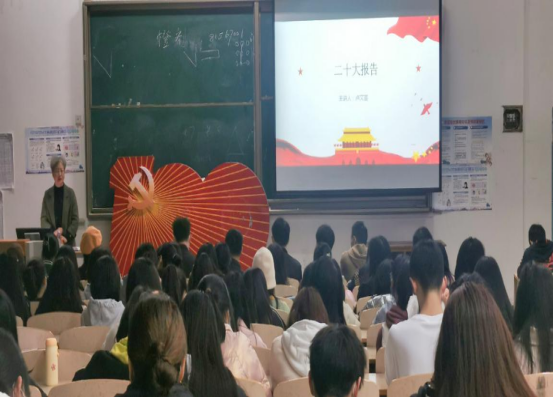 为深入学习宣传贯彻党的二十大精神,2022年11月25日晚,我院党委书记卢文芸同志在15-102教室向全体学生党员和干部宣讲党的二十大精神。