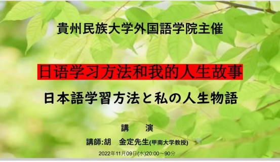 日语系学子作了一场题为《日语学习方法和我的人生故事》的线上讲座。日语系主任李海博士主持会议,日语系全体学生前往学术报告厅聆听了该讲座。