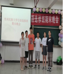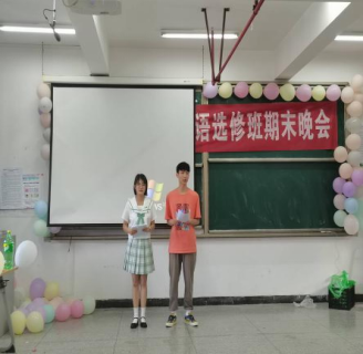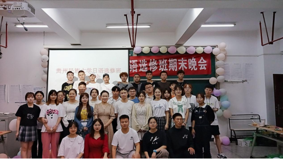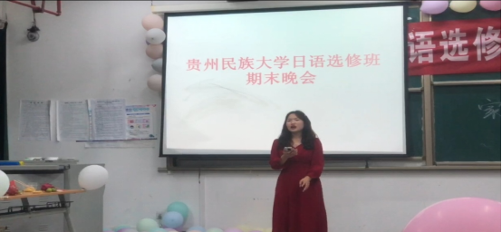 《大学日语》文化表演会暨2019级大学日语班结课仪式在花溪校区15栋312教室举行,活动由大学日语班的两位同学主持,他们是2019级法学院的杨蕾嫣同学和2019级音舞学院的蒋江武同学。