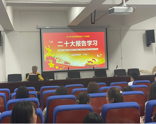 党委书记卢文芸教授组织第65期积极分子培训班成员进行了党的二十大报告的学习。