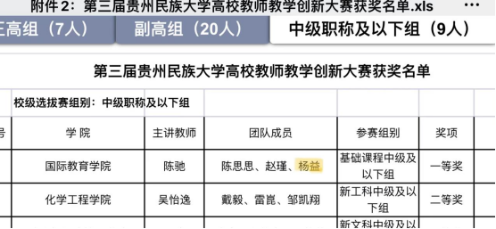 根据中国高等教育学会《关于举办第三届全国高校教师根据中国高等教育学会《关于举办第三届全国高校教师教学创新大赛的通知》和贵州省教育厅要求,女优视频 第三届高校教师教学创新大赛校赛于 2022 年 11 月 16 日至 2023 年 3 月 7 日成功举办,女优视频 2支“大学英语”教学团队分别荣获三等奖。此外,杨益老师参与的《中华礼仪》项目获校级一等奖,在4 月 17日举行的省赛上荣获二等奖。特此祝贺!