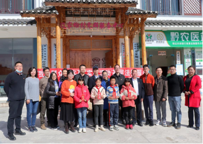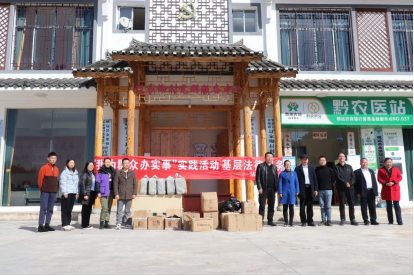 的五家处级单位给辽家坳村送来资金和物资支助辽家坳的四名小学生。法学院师生还向辽家坳村村民进行法务宣传活动。