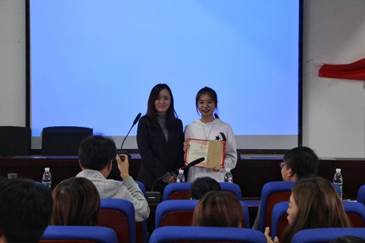 下午2点,活动准时开始。首先,由主持人彭映芬和夏阳向在座全体人员介绍此次比赛主题及规则,同时对出席活动的老师及评委们表达最诚挚的感谢。热烈的掌声还来不及回响,同学们已经严阵以待,翘首以盼参赛选手的精彩演出。第一个上场的选手是18级的潘畅畅同学,她自信沉稳、抑扬顿挫的演讲拉开比赛的序幕。时间一分一秒在流逝,比赛也如火如荼地向前推进。评委席不断发出的犀利问题不仅揪住观众的心,更考验选手的反应能力与应对技巧。