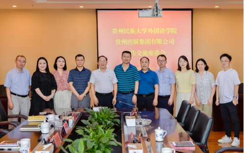 院长肖唐金,副院长张广勇,英语系教师朱颖,教务科伍心悦一行赴贵州出版集团有限公司参加合作交流座谈会,为落实女优视频