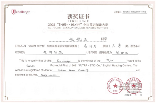 龚坤老师指导2020级法学专业张文卓获得演讲一等奖,韩娟老师指导2020级研究生苏浩辀获得阅读一等奖,张田田老师指导2019级英语专业姚航玉获得阅读三等奖。