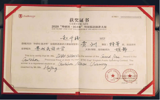 伴随着激动人心的颁奖典礼,2020年“外研社·国才杯”全国英语三大赛贵州省复赛圆满落幕!