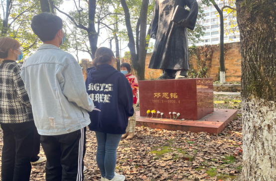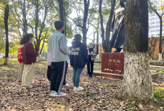 第十六期发展对象小组成员在邓恩铭烈士雕像前举行红色经典诵读活动,缅怀先烈