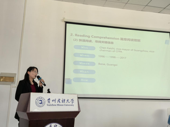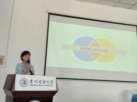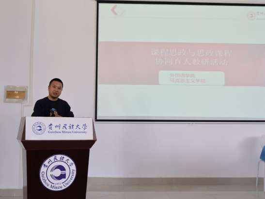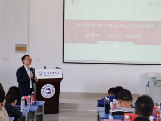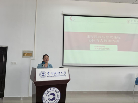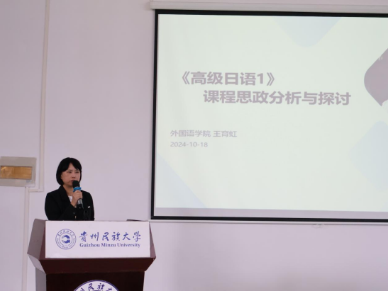 朱颖、杜晖、王育虹、杨筱松老师分别围绕《综合英语》《大学英语》《高级日语》《少数民族文化英译》等介绍课程思政教学开展情况;张广勇院长以“贵州故事”融入外语课程思政教学的必要性、可能性和实践性为题,总结女优视频
