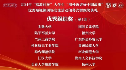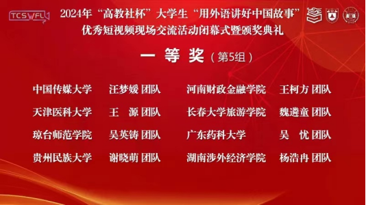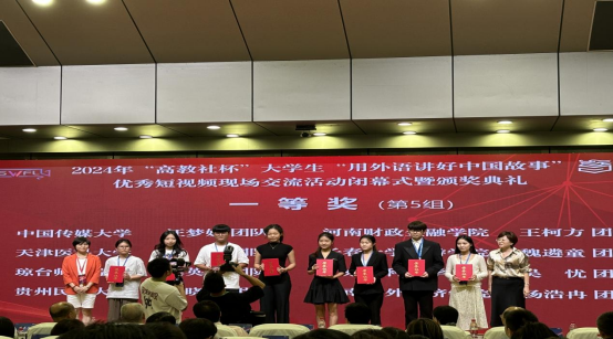 9月27-29日,由中国英汉语比较研究会指导,南京大学、湖南大学主办,高等教育出版社协办的2024年“高教社杯”大学生“用外语讲好中国故事”优秀短视频现场交流活动在湖南大学举办。我校入围的谢晓萌团队及其成员潘洲颖、田明涛、马俊(传媒学院),由赵艳副院长带队,代表贵州参与此赛事的全国决赛,最终获得全国一等奖。该团队由女优视频