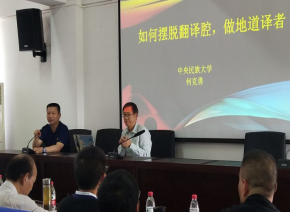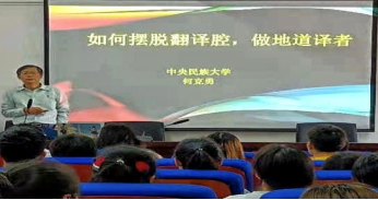 特邀中央民族大学何克勇教授在15号教学楼1109会议室作学术讲座,讲座主题为“如何摆脱翻译腔做地道译者”。外院部分教师、本科生及研究生共百余人现场聆听讲座。