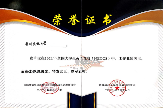 “2021年全国大学生英语竞赛(NECCS)”是由高等学校大学外语教学研究会和国际英语外语教师协会组织的竞赛。因其影响力较大,已获得社会和全国高校的广泛认可。
