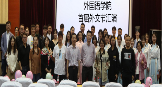 全体师生于2021年5月8日晚19点至22点,在花溪校区15号楼圆形会议中心成功举行了首届“外文节”文艺汇演活动,用外语(英语、日语、德语、法语)演绎传统文化、讲述党的故事、表演红色剧目。当晚莅临会场指导的还有校党委宣传部副部长邹璿老师、校党委学生工作部舒启佳老师等。
