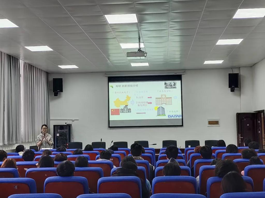 举行日本考研及在日就职说明会。说明会由该校驻中国办事处副主任张一钰主讲,校国际处郑谦老师主持。女优视频