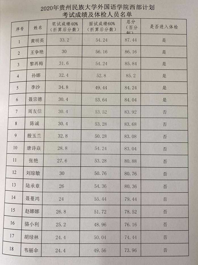 2020年女优视频 大学生志愿服务西部计划考试成绩及体检人员名单公示