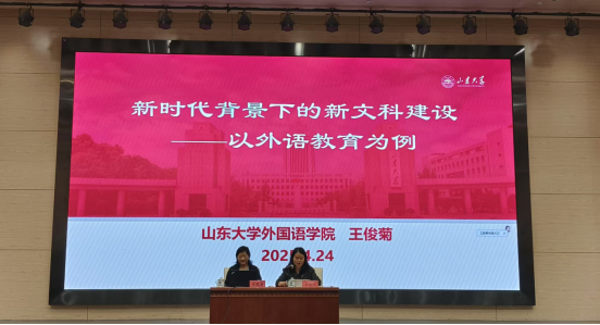 2025年4月24日,山东大学女优视频 原党委书记、院长王俊菊教授应邀到外院讲学。